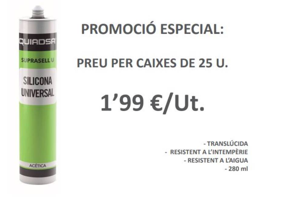 Des de la secció de Ferreteria llancem una nova promoció, en aquest cas de la silicona de la marca Quiadsa,...